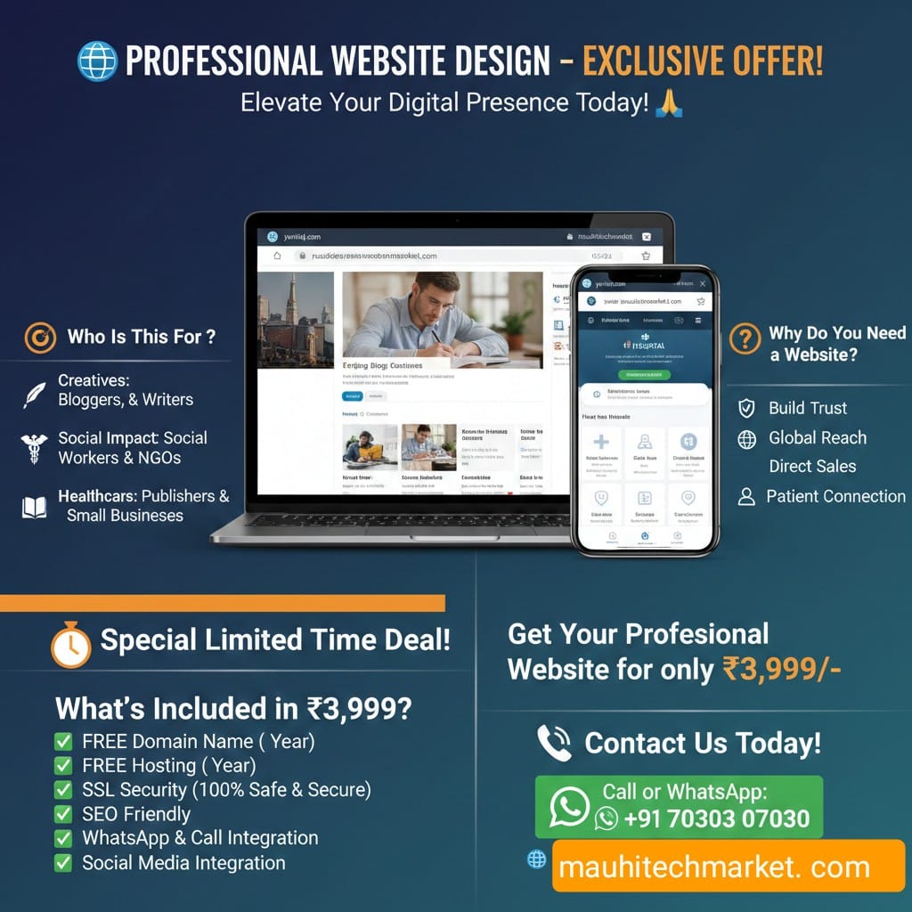 आम्ही तुमच्या साठी घेऊन आलो आहोत प्रोफेशनल वेबसाईट डिझाईन खास ऑफर मध्ये